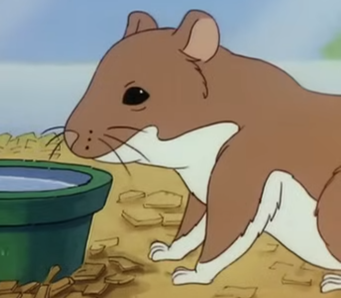 The hamster is the class pet hamster and a minor character. Normally its cage is seen in the background in some episodes. It physically appeared in two episodes; "Hops Home" and "In a Pickle". It was also seen in the classroom level of the PC game "The Magic School Bus Explores the Human Body".